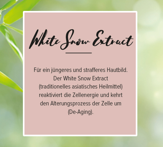 Anti-Aging Serum Für ein jüngeres und strafferes Hautbild. Der White Snow Extract reaktiviert die Zellenergie und kehrt den Alterungsprozess der… mehr erfahren