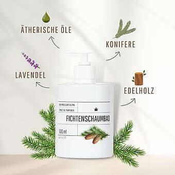 Seit 1957 bewährt und beliebt - unser Fichtenschaumbad. Mit einer feinen Duftkombination aus Ladendel, Konifere, Edelholz, Ätherischen Ölen. mehr erfahren